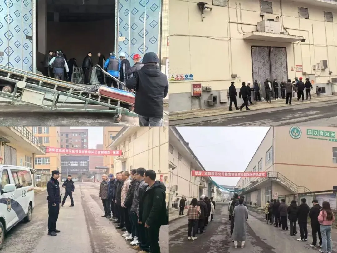 1月16日,翠屏粮储公司在象鼻库区开展防盗防哄抢实战演练。