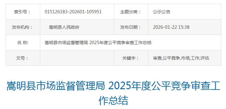 2025年,嵩明县市场监督管理局作为县公平竞争审查工作牵头部门,严格遵循上级决策部署,切实履行统筹协调、指导监督职责,全力推动公平竞争审查制度在全县范围内深入实施,着力破除行政性垄断,维护市场公平竞争秩序,为优化我县营商环境、促进高质量发展提供了有力支撑。现将全年工作总结如下: