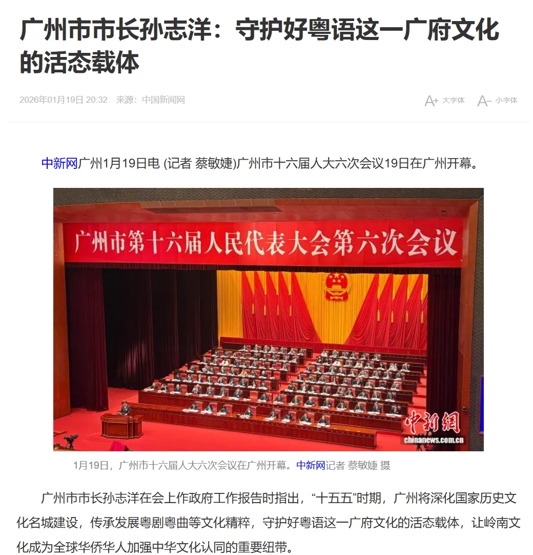近日广州市的政府工作报告让不少广州人眼前一亮,首次在正式文件里出现这样一句话——“守护好粤语这一广府文化的活态载体。”