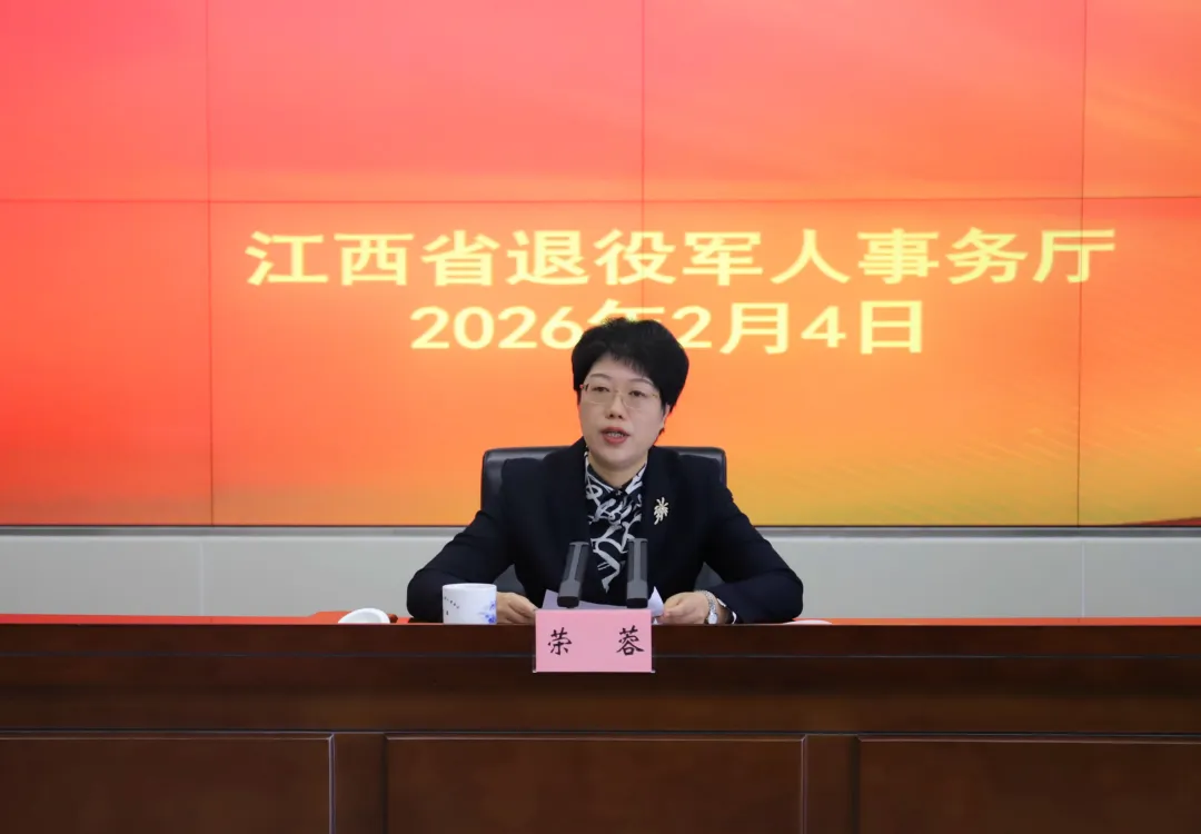 荣蓉强调,2026年是“十五五”开局之年,要深入学习贯彻习近平总书记关于退役军人工作的重要论述和重要指示批示精神,紧紧围绕“让军人成为全社会尊崇的职业、让退役军人成为全社会尊重的人”,坚决落实党中央决策部署和省委、省政府工作要求。一要坚持政治引领,把稳高质量发展之舵。始终将政治建设摆在首位,坚持不懈用习近平新时代中国特色社会主义思想凝心铸魂,自觉站在政治和全局的高度、从服务强国强军伟业出发强化政治引领、谋划推进各项工作。二要聚焦主责主业,抓实高质量发展之要。继续巩固接收安置质量,持续提高服务保障水平,进一步加强退役军人教育管理,不断完善促进作用发挥机制,用心用情维护退役军人合法权益,让更多退役军人更好共享改革发展成果。三要加强自身建设,激活高质量发展之源。不断加强党的全面领导,持续巩固拓展深入贯彻中央八项规定精神学习教育成果,按照上级部署要求扎实开展树立和践行正确政绩观学习教育,坚定不移推进全面从严治党,持之以恒抓实作风建设,奋力推动江西退役军人工作走在前列、作出示范。