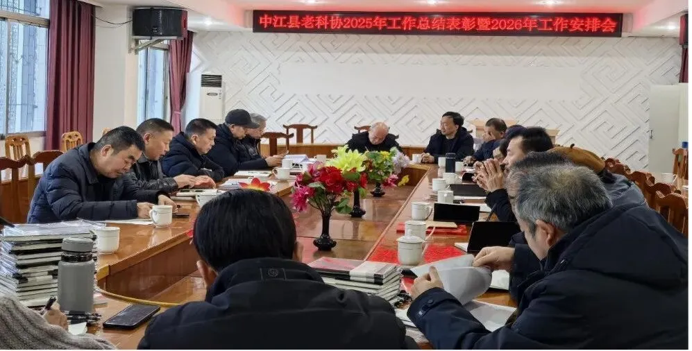 2026年2月4日,中江县老科技工作者协会在县委老干局二楼会议室召开2025年工作总结表彰暨2026年工作安排会。县老科协会长、副会长,第二届老科协理事,副秘书长,各专业组党支部书记和正、副组长,受表彰的先进个人参加会议。会议由县老科协党总支部书记、会长蒋宗文主持。