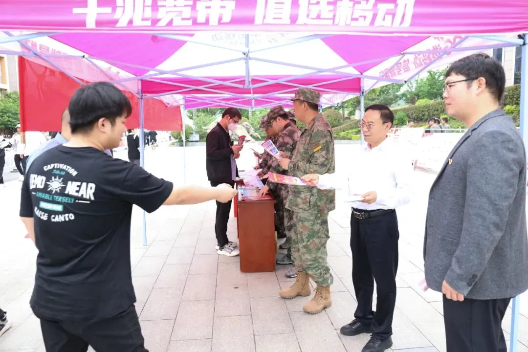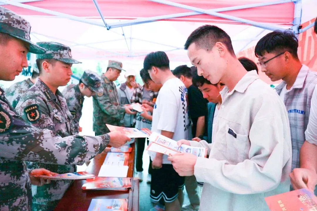 会后县人武部和学校领导深入学生之中发放宣传彩页,并对有疑惑的学生进行面对面宣传讲解,引导学生积极了解新修订《征兵工作条例》,学校利用电子屏幕播放征兵宣传片、悬挂条幅、布设展板、张贴海报等形式大力营造征兵氛围,激发同学们参军报国的热情,为做好我校2023年征兵工作奠定良好基础。文字 / 校武装部