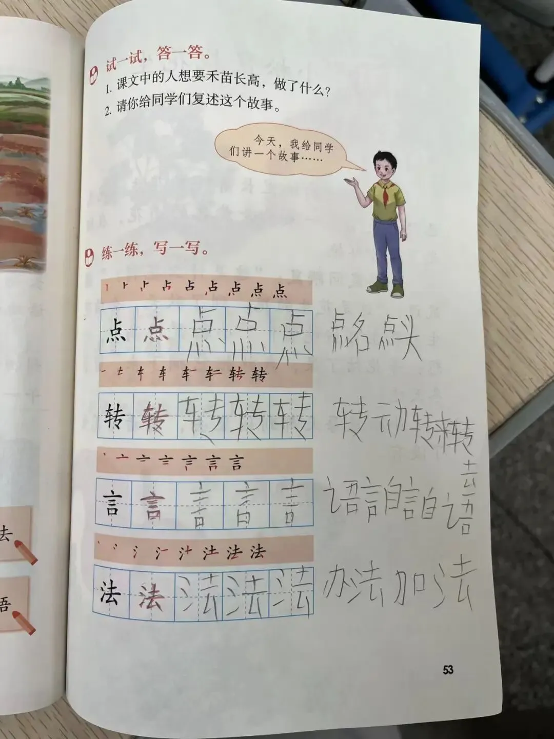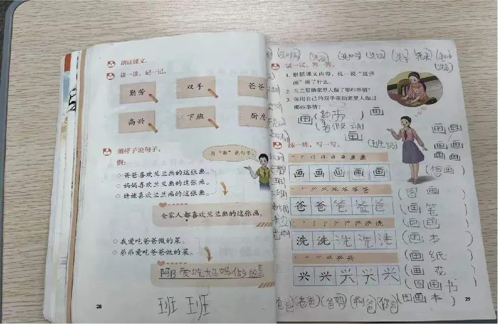 本学期持续贯彻和加强学生的学习习惯养成,在生字学习的过程中一方面结合识字视频的应用,一方面结合教参中汉字的书写提示和马校跟我们总结的生字教学基本方法在教学中的讲解与应用。通过坚持跟随老师上课节奏完成笔记的补充,提高学习效率的同时延长学生对教师和学习内容的关注度,夯实知识的基础延伸,养成良好的学习习惯。通过一学期的坚持,AB层的同学能在第一课时识字环节完成简单词语积累笔记,C层同学能在老师的提醒和辅助下完成生字描写,写字效率也得到锻炼和提高。