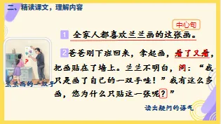 (3)文本结构分析,抓住中心句梳理课文脉络和课文逻辑,突出重点以结构化的方式理解课文内容,通过讲练结合的方法拆解阅读任务,强化理解训练。借助标点符号的提示和人物语气的变化体会文段中人物的感情。