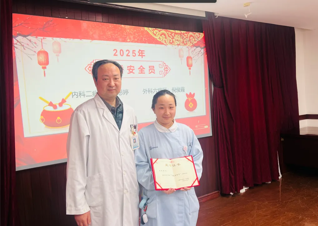 护理部对2025年取得成绩的优秀带教、优秀病区安全员等个人进行了表彰,医务科科长于学伟为优秀工作者颁发奖状。通过先进表彰,激发全员争先创优热情,营造 “比学赶超” 的良好工作氛围,提升护理团队整体积极性。