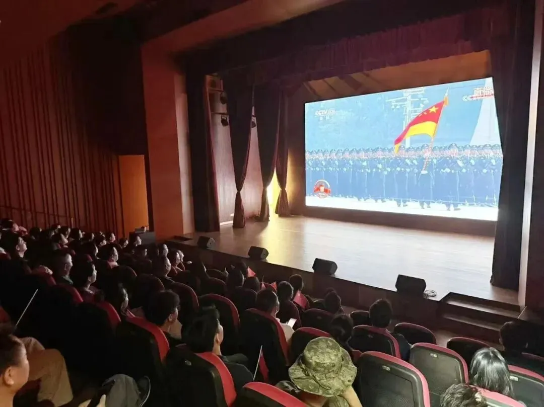 ▲ 协会秘书处和部分会员单位代表在广州市国防教育中心观看纪念中国人民抗日战争暨世界反法西斯战争胜利80周年阅兵仪式