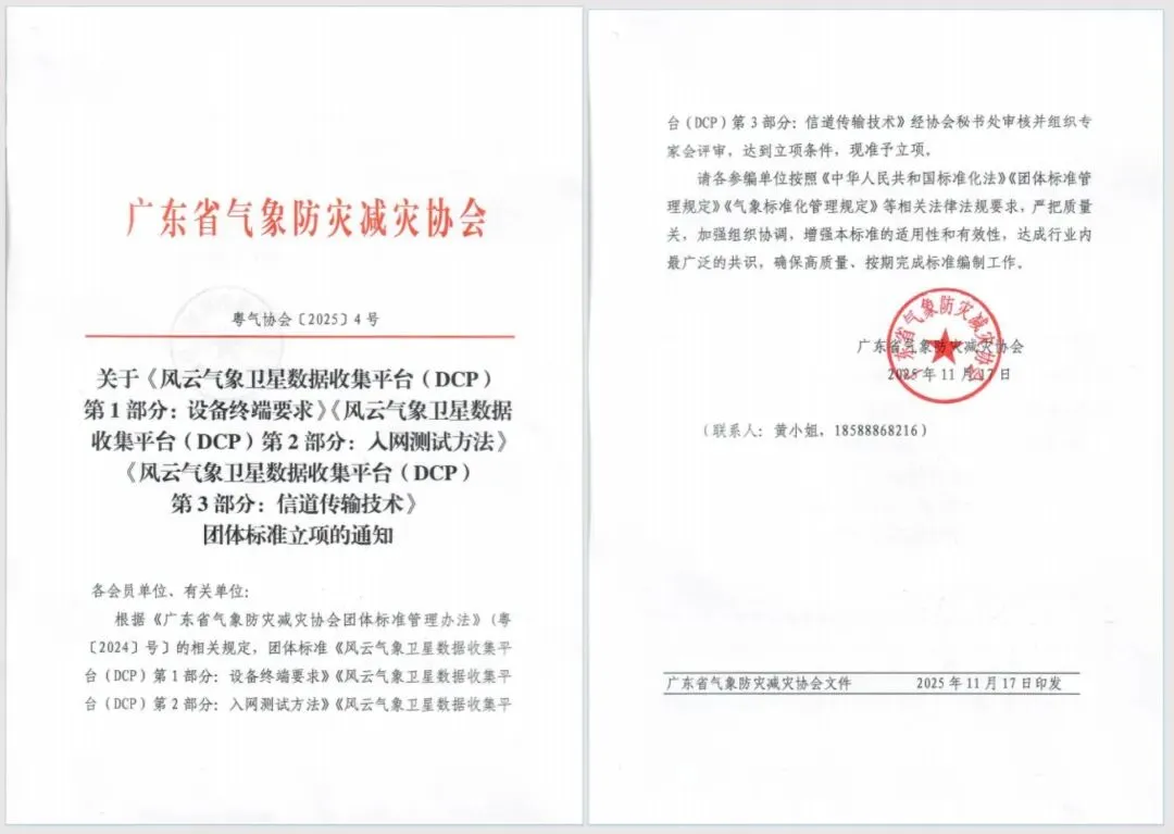 ▲ 广东省气象防灾减灾协会关于《风云气象卫星数据收集平台(DCP)》系列团体标准立项的通知