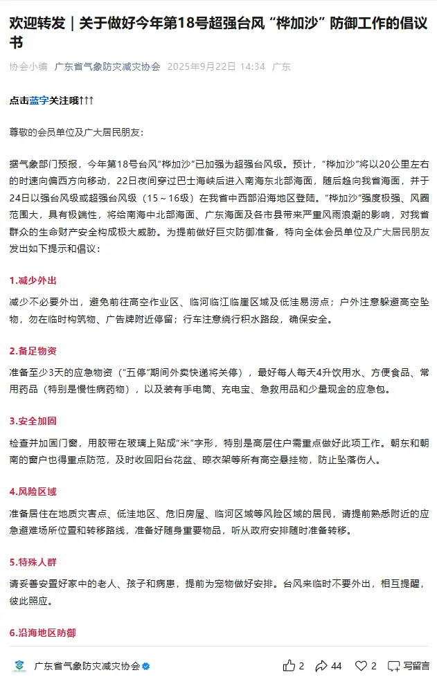积极参与“3·23世界气象日”开放日,针对超强台风“桦加沙”及时发起防御倡议宣传,助力筑牢群防群治基础,以专业支撑做政府部门的好参谋、好助手。