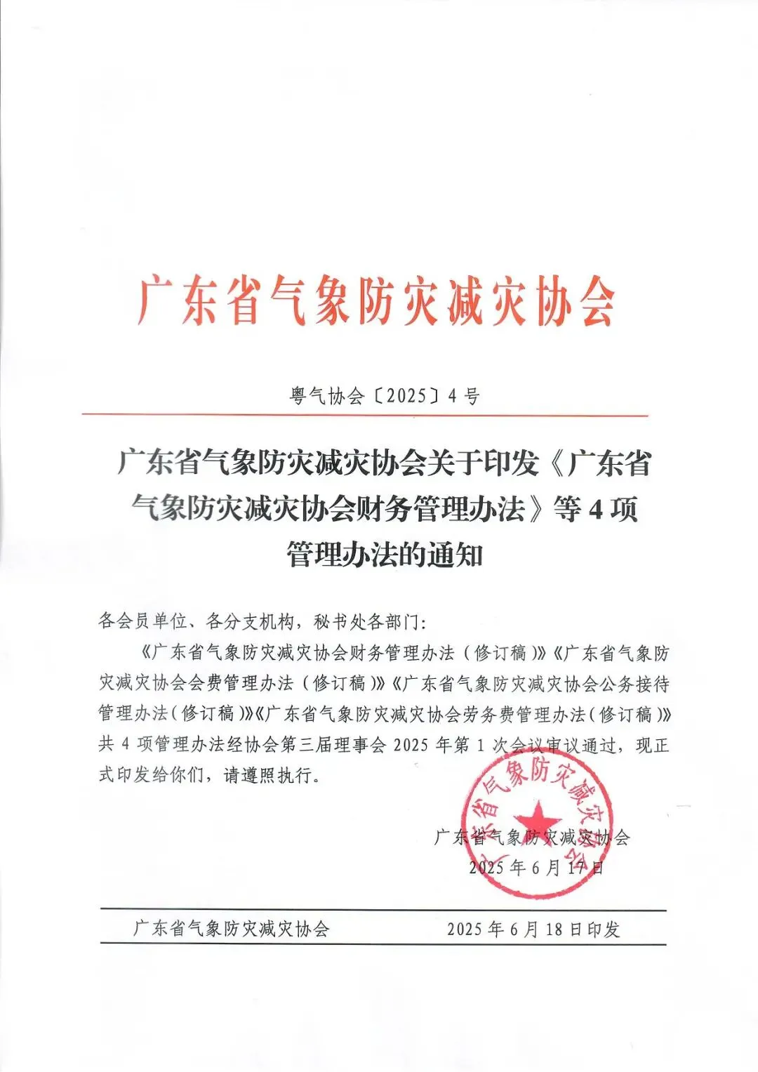 坚持提升内部治理能力,修订了《广东省气象防灾减灾协会财务管理办法》等4项管理办法。