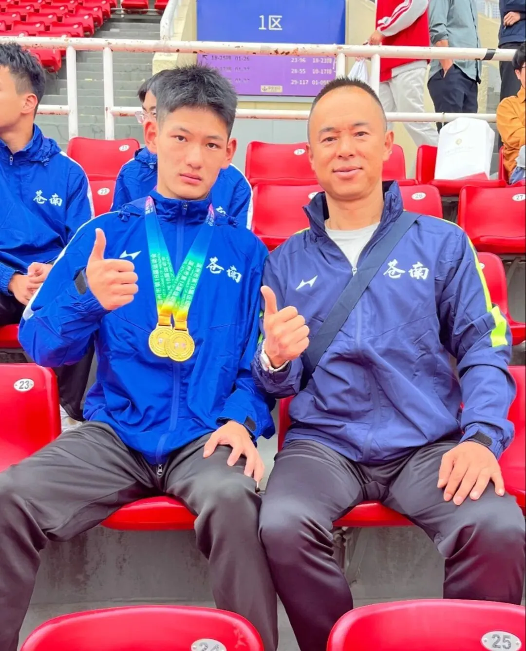4 月省青少年田径锦标赛,13 岁小将金国镇横空出世,包揽男子 100 米、400 米双冠;庄宙斩获 200 米栏亚军、110 米栏第四名,用实力证明潜力无限。
