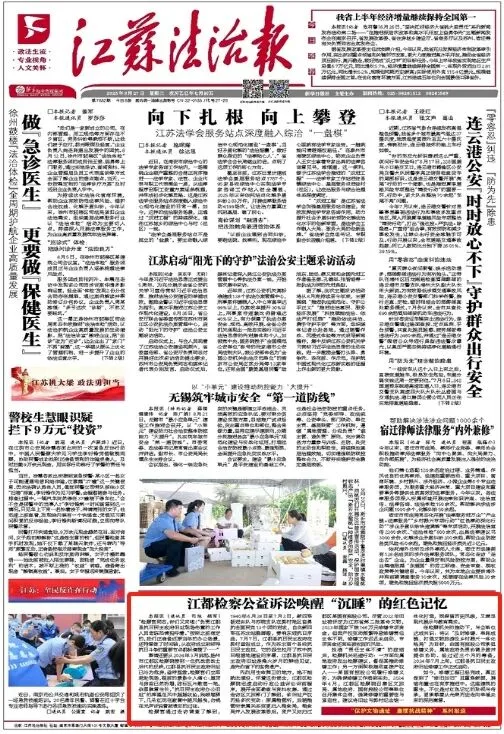 《江苏法治报》头版 | 江都检察公益诉讼唤醒“沉睡”的红色记忆