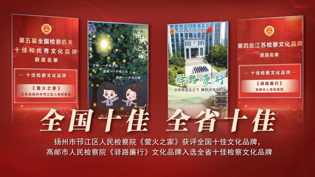 着力夯实基层基础,邗江区检察院“萤火之家”、高邮市检察院“驿路廉行”分别获评全国、全省十佳检察文化品牌。