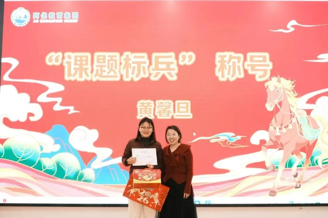 △阿优教育集团总园长郭晶晶和校园管理中心教学教研部主管肖丽为2025年度优秀教学副园长(负责人)蓝雅琴、吴蓝蓝颁奖