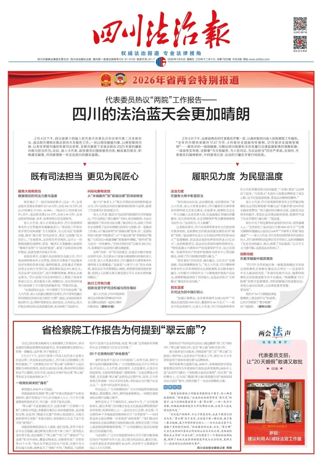 2月6日,《四川法治报》头版刊登《省检察院工作报告为何提到“翠云廊”?》,全文如下: