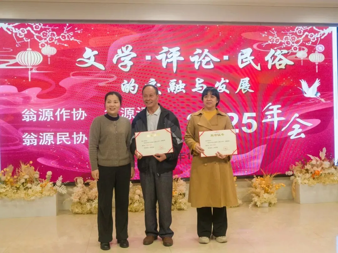 韶关评协副主席钟秋鹏为翁源评协优秀会员官子军、朱爱珍颁奖