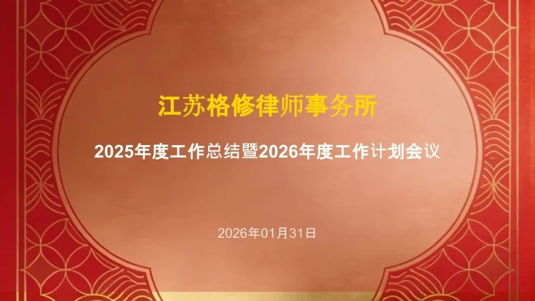 2026年1月31日下午,江苏格修律师事务所2025年度工作总结暨2026年度工作计划会议顺利召开。格修律所全体律所及员工齐聚一堂,回望过往成果,共绘崭新蓝图。