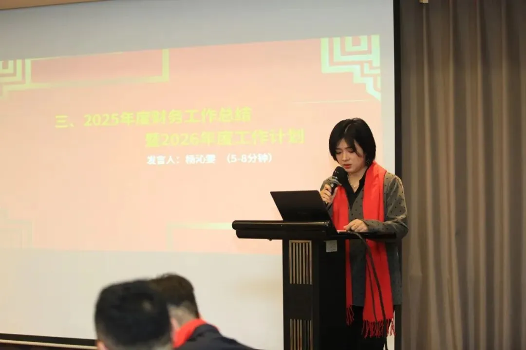 根据会议议程安排,接下来由格修律所财务负责人杨沁雯总结2025年度财务工作,提出新一年工作目标和计划,同时要求全体律师及员工具有财税风险意识,强调2026年度将在财税管理和制度上更加严苛,为律所发展及律师个人成长把好财税风险关口。荣耀时刻,见证新成长