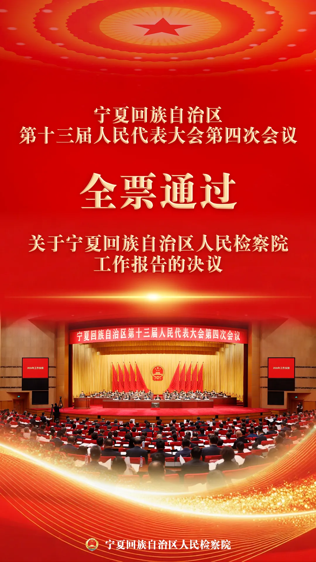 2月6日,宁夏回族自治区第十三届人民代表大会第四次会议全票通过自治区人民检察院工作报告。