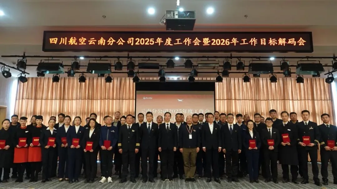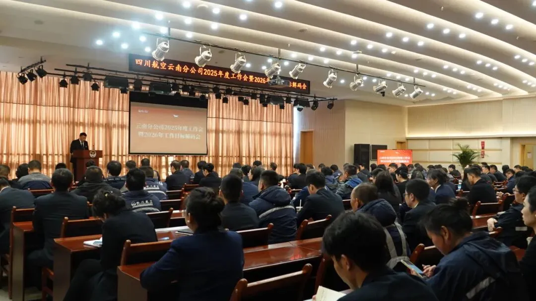 云南分公司副总经理李勇福、党委书记吴克成、总经理李志远分别作云南分公司安全工作报告、党委工作报告、年度工作报告。会议签订2026年云南分公司《安全管理责任书》《航班正常责任书》《品牌质量责任书》《党风廉政责任书》《党建目标责任书》。会议还表彰了2025年奋战在大党建、安全生产、运行保障、品牌服务、创新创效板块的52名先进个人。
