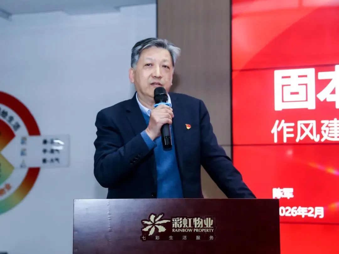 彩虹物业集团总经理徐荣华对公司2025年度各项工作进行全面总结回顾,充分肯定成绩,深入剖析不足,并对2026年重点工作进行部署:针对党建引领、年度主营目标、费用清缴、续签市拓、多种经营、品质提升、安全生产、人才建设、预算管控、智能化管理等方面的实现目标、举措和路径进行系统性谋划;要求全体彩虹物业人凝心聚力、真抓实干,以“提质增效、稳盘增收、品牌赋能、团队强基”为核心导向,强化责任落实、过程管控与创新突破,构建稳定、高效、可持续的运营新格局,为业主创造更美好的居住环境,为公司铸就更坚实的发展根基。