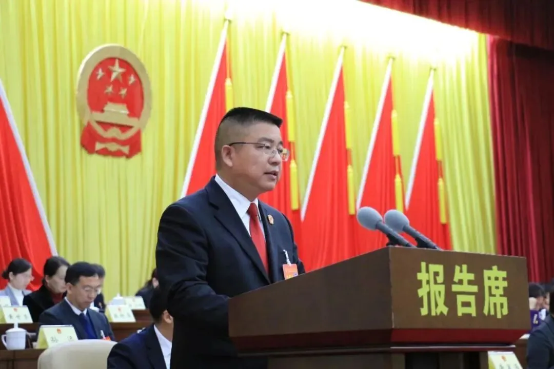 2025年2月18日上午,在西林县第十三届人民代表大会第五次会议上,西林县人民法院院长王木高向大会作工作报告。