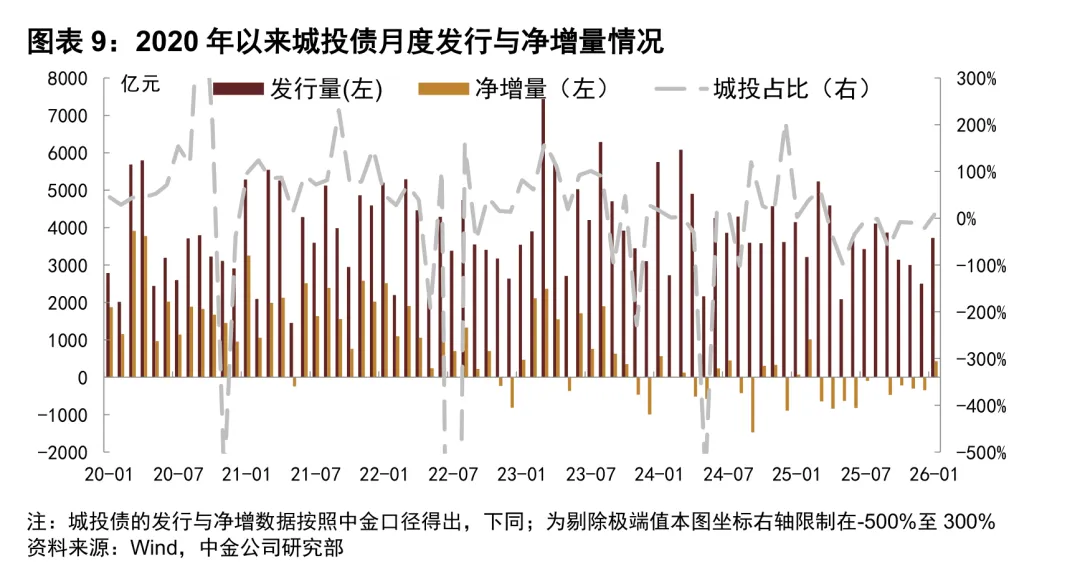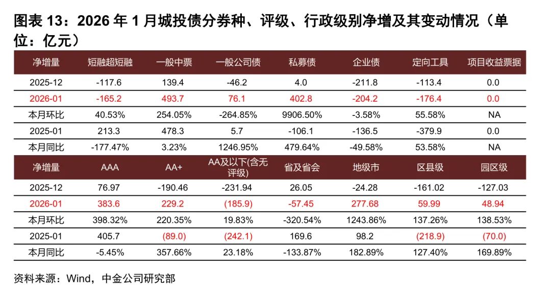 融资:1月城投债发行量环比增长、同比下降,净增量环比转正、同比净流入扩大。