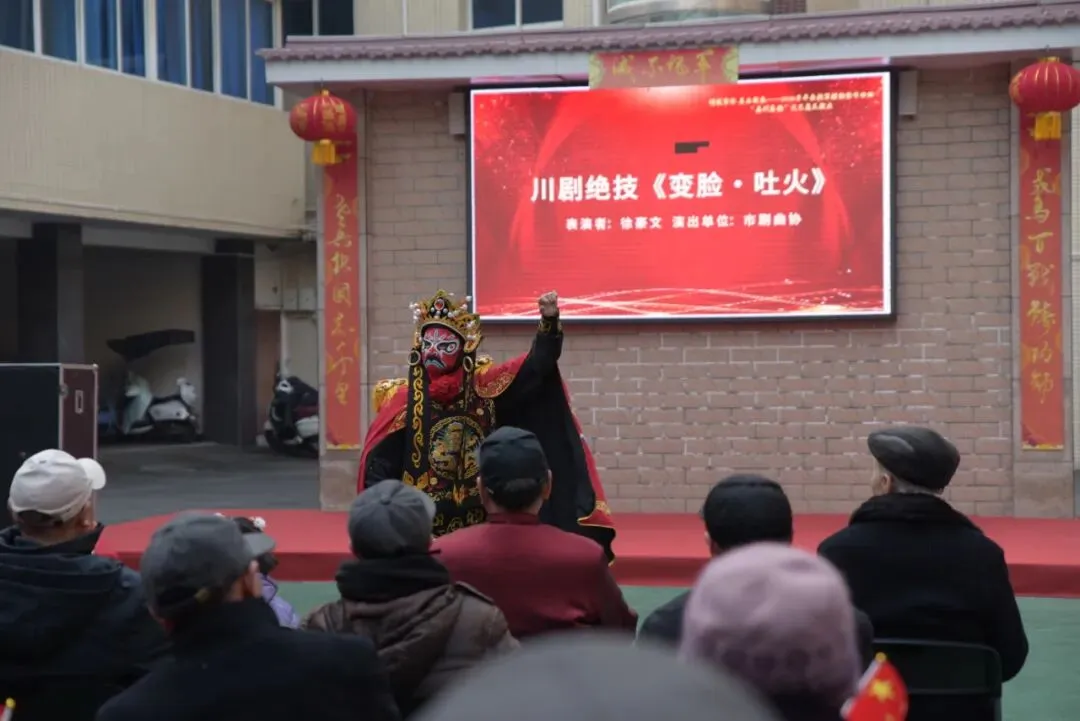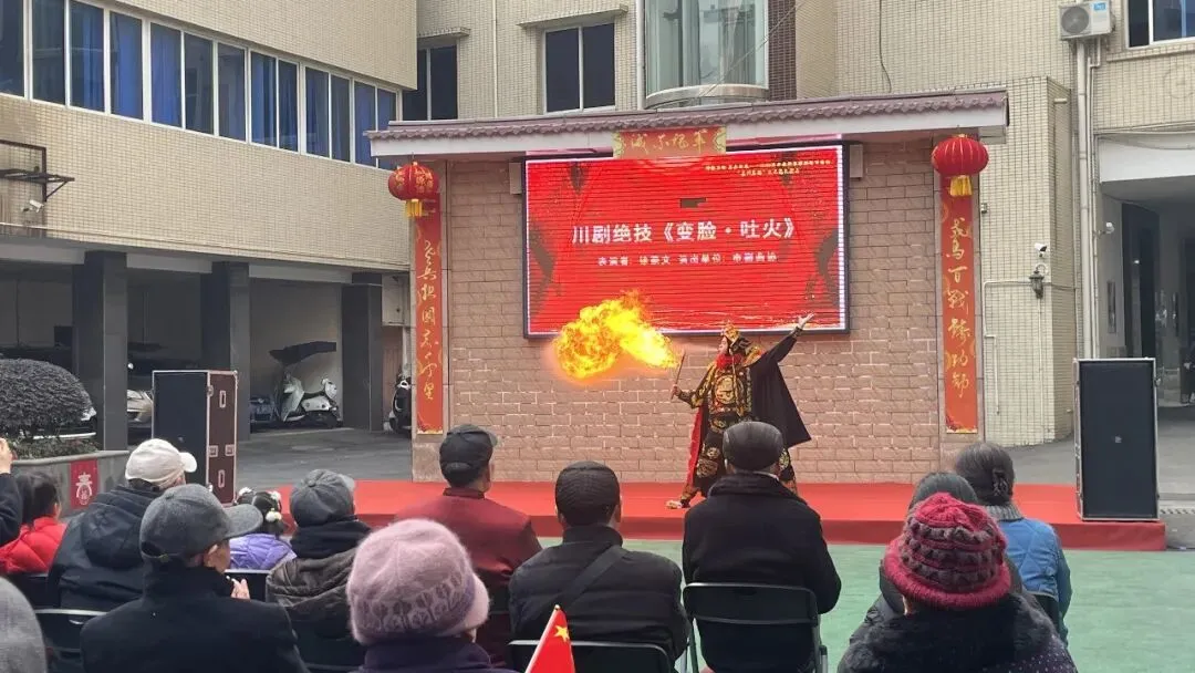 活动现场,文艺汇演环节紧扣“颂军魂、忆初心、庆新春”主题,8个精品节目轮番上演。乐山市戏剧曲艺家协会演员带来金钱板、快板等地方曲艺节目传递正能量,青年女高音演唱经典歌曲引发全场共鸣,川剧《变脸·吐火》等节目展现传统文化魅力,抒发爱国拥军情怀,将气氛推向高潮。文艺演出结束后,福气套圈、新春投壶等民俗游园项目开启,老同志们踊跃参与,在欢声笑语中感受民俗乐趣、增进邻里情谊。