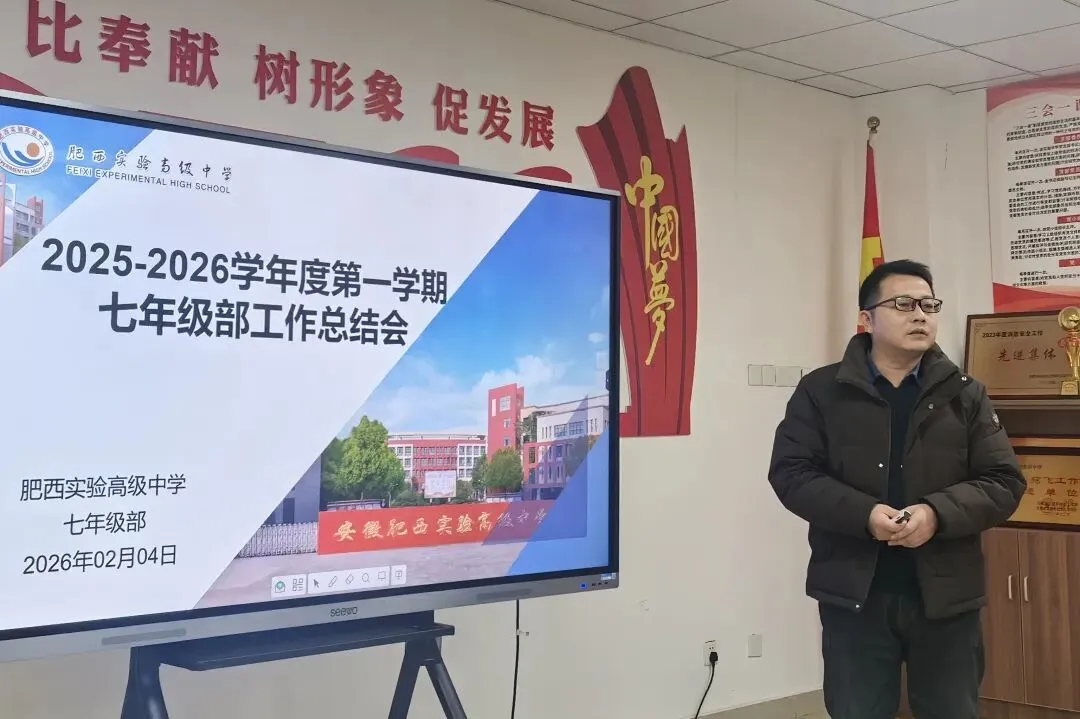 2月4日下午,我校七年级部工作总结会在会议室顺利举行。肥西实验高级中学校长韩远兵,党总支书记、常务副校长周丰群,副校长张秀军,副校长汪晓宇莅临指导。七年级部全体教师齐聚一堂,共同复盘阶段工作、梳理问题不足、谋划后续发展。