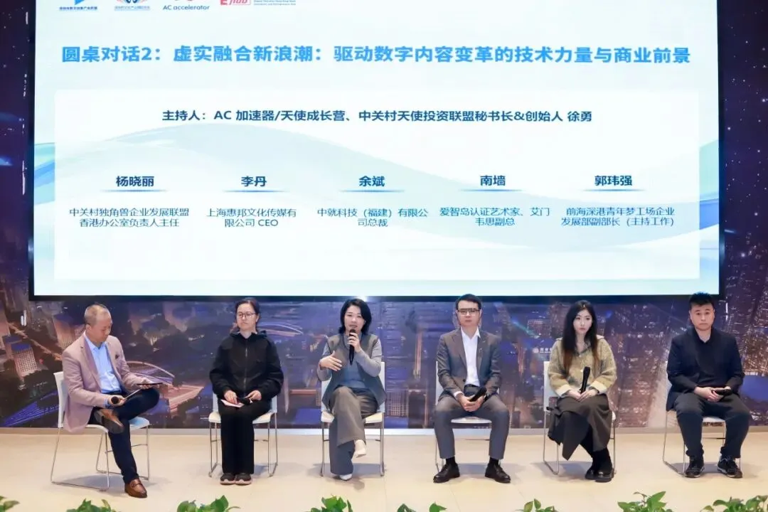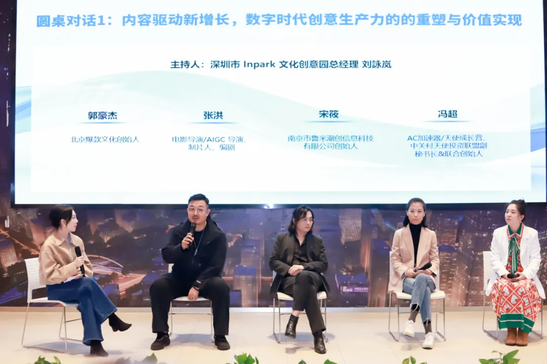 第一场圆桌对话由深圳市Inpark文化创意园总经理刘詠岚主持,多位来自内容创作与投资领域的企业家,就新兴技术应用、创意商业化路径等议题展开了思想碰撞,探讨了新时代背景下创意生产方面效率提升与价值放大的新可能。