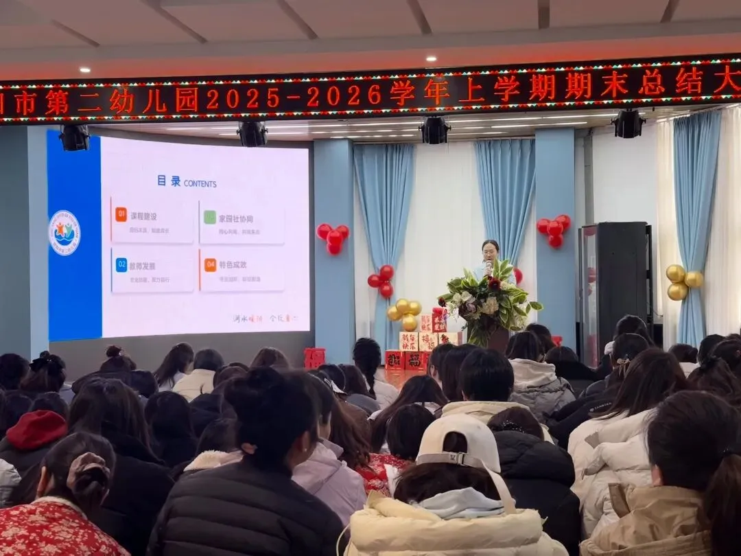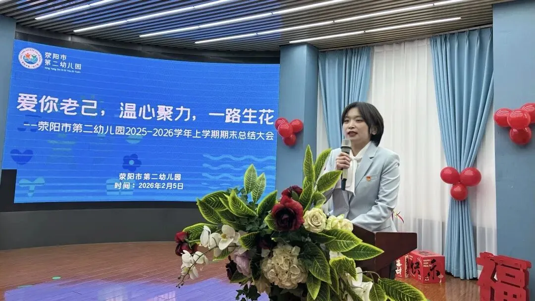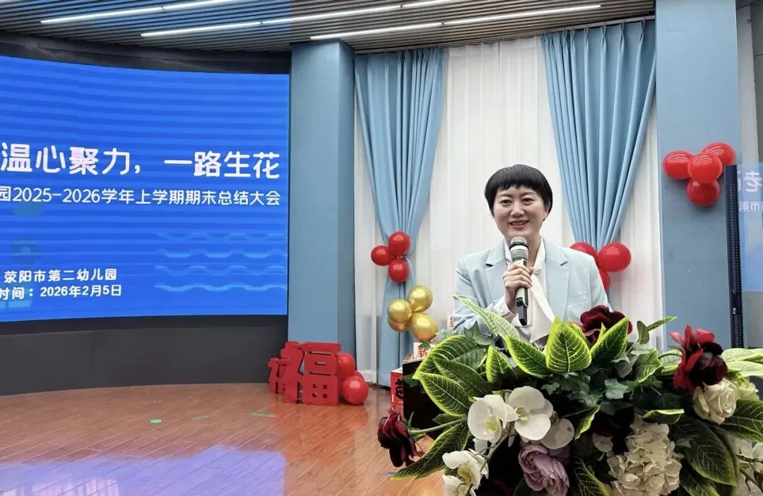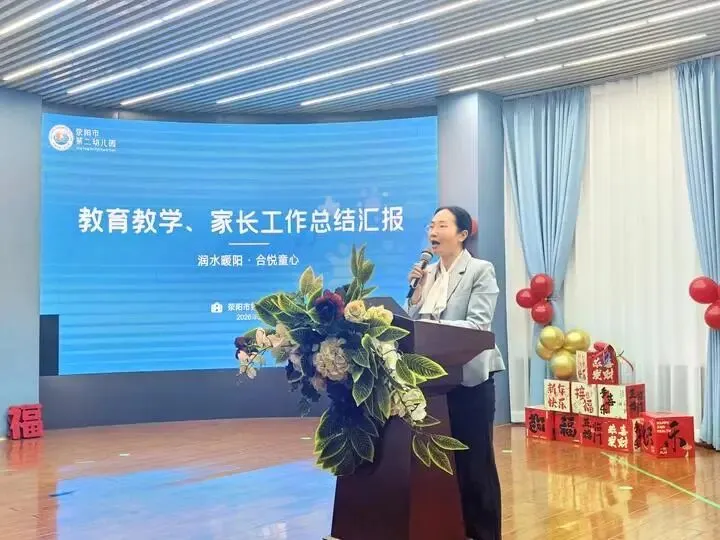 最后,园长贺平作总结讲话,她充分肯定了全体教职工以专业素养和无私爱心护航幼儿健康快乐成长所取得丰硕成果。她表示:新的一年,荥阳市第二幼儿园将持续深化教育内涵建设、优化育人环境、强化家园社协同育人机制,不断提升保教工作质量,为幼儿提供更优质的教育服务。最后,她向全体教师送上真挚的新春祝福,祝愿大家心有所悦、业有所成、马年大吉、万事可期!