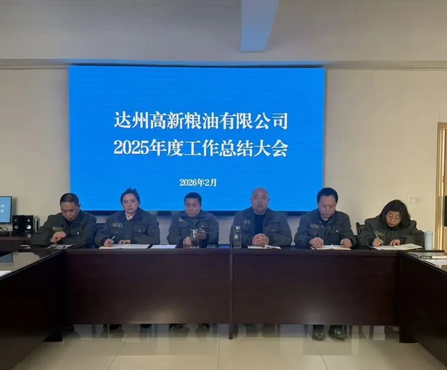 2月6日,达州高新粮油有限公司2025年度工作总结大会顺利召开,公司全体干部职工参会。会议全面复盘年度工作成效、分析发展形势,表彰先进典型、激发干事活力,进一步统一思想、凝聚共识,为2026年公司各项工作高质量推进锚定方向、汇聚合力。