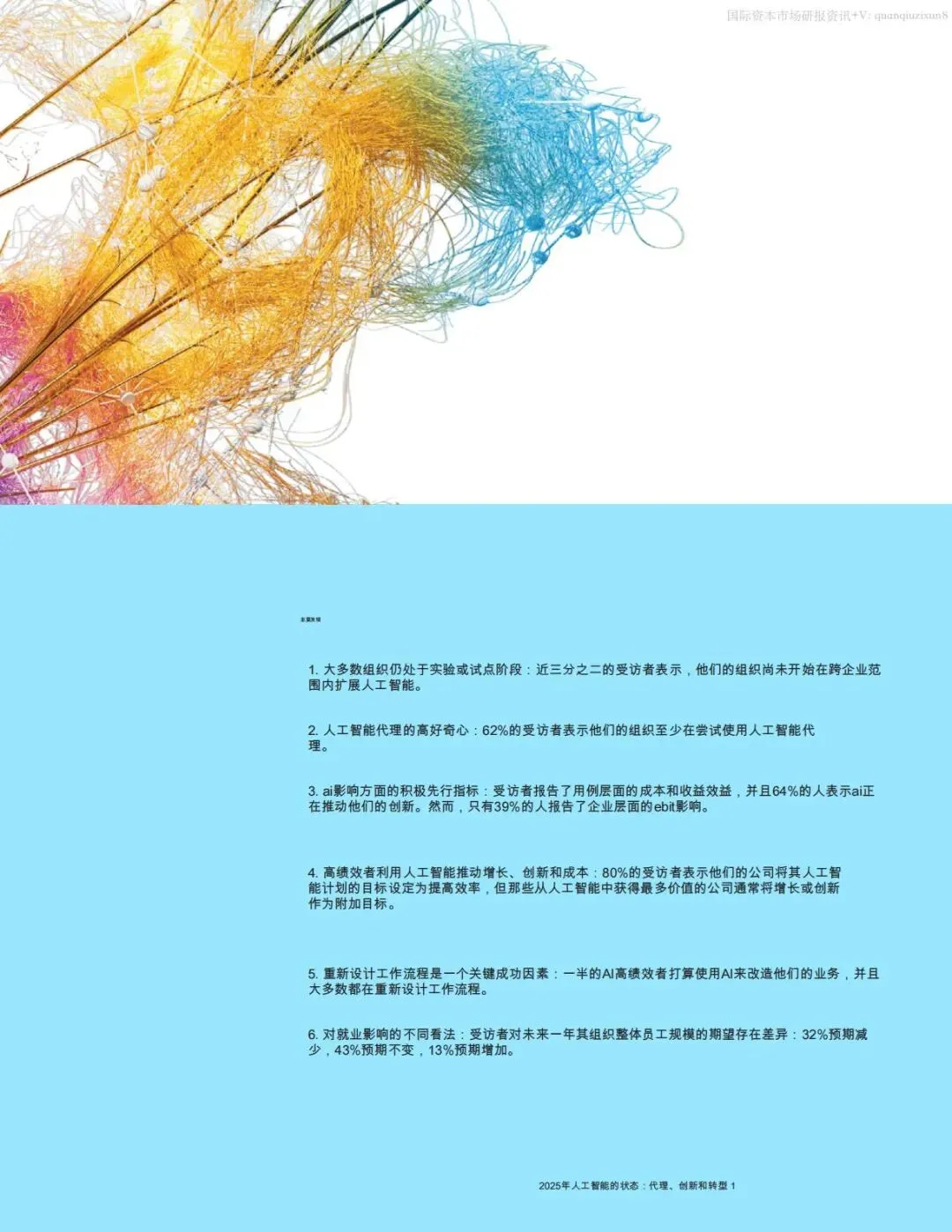 报告特别关注了AI Agent(智能体)的发展趋势。随着生成式AI技术的不断成熟,AI Agent正成为企业探索的新热点。报告显示,62%的受访企业已经开始试验AI Agent类应用,如AI客服助手、AI知识总结助手、AI代码生成工具等。然而,尽管AI Agent的试验热度高涨,但真正在业务流程中跑通并实现规模化应用的企业却寥寥无几。