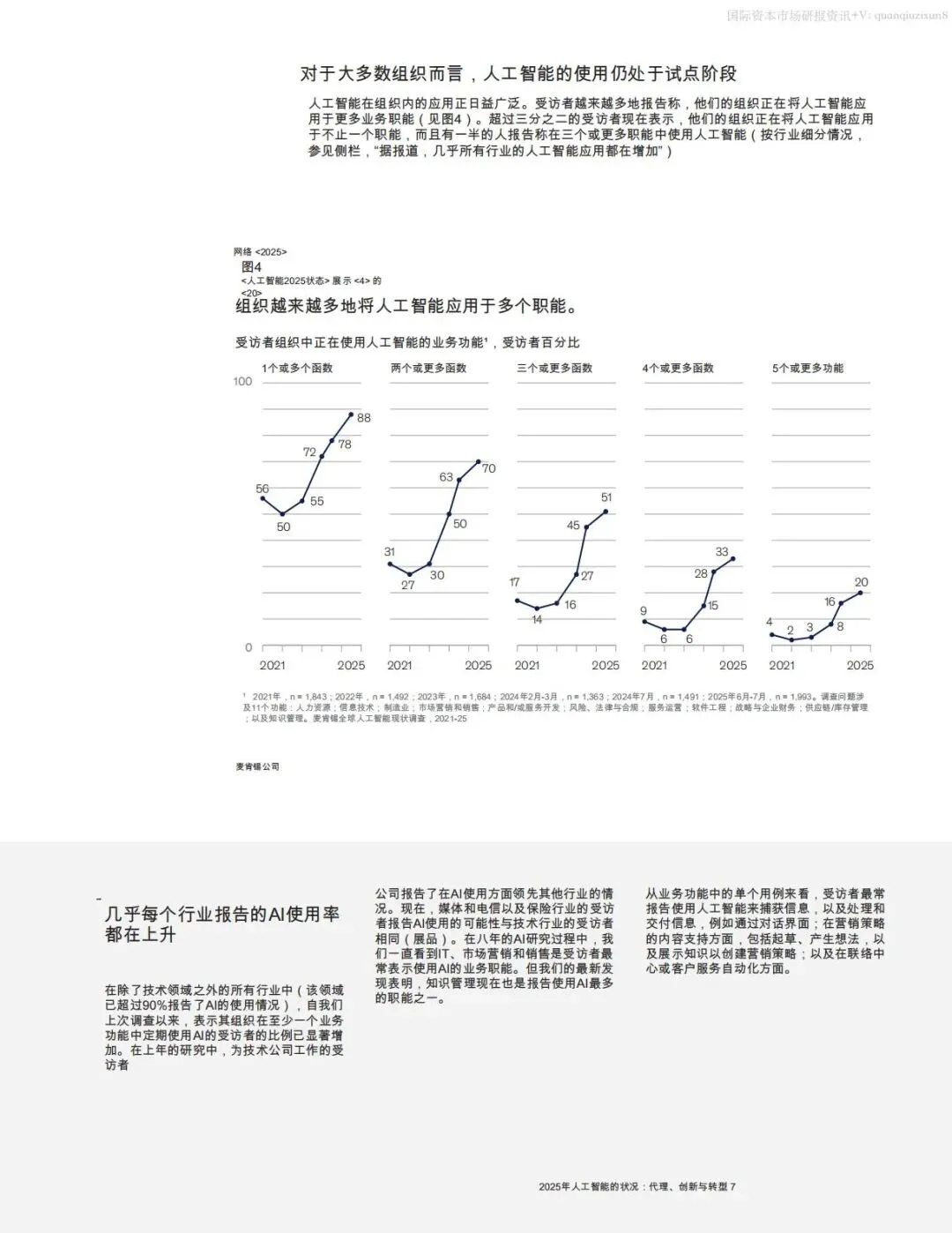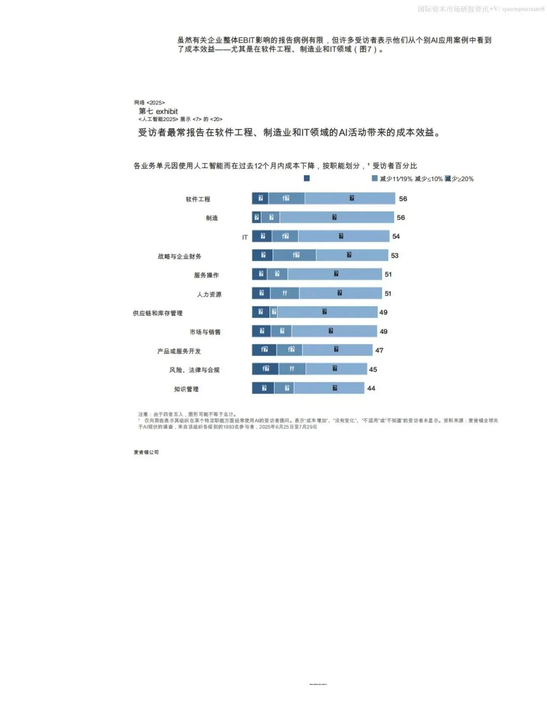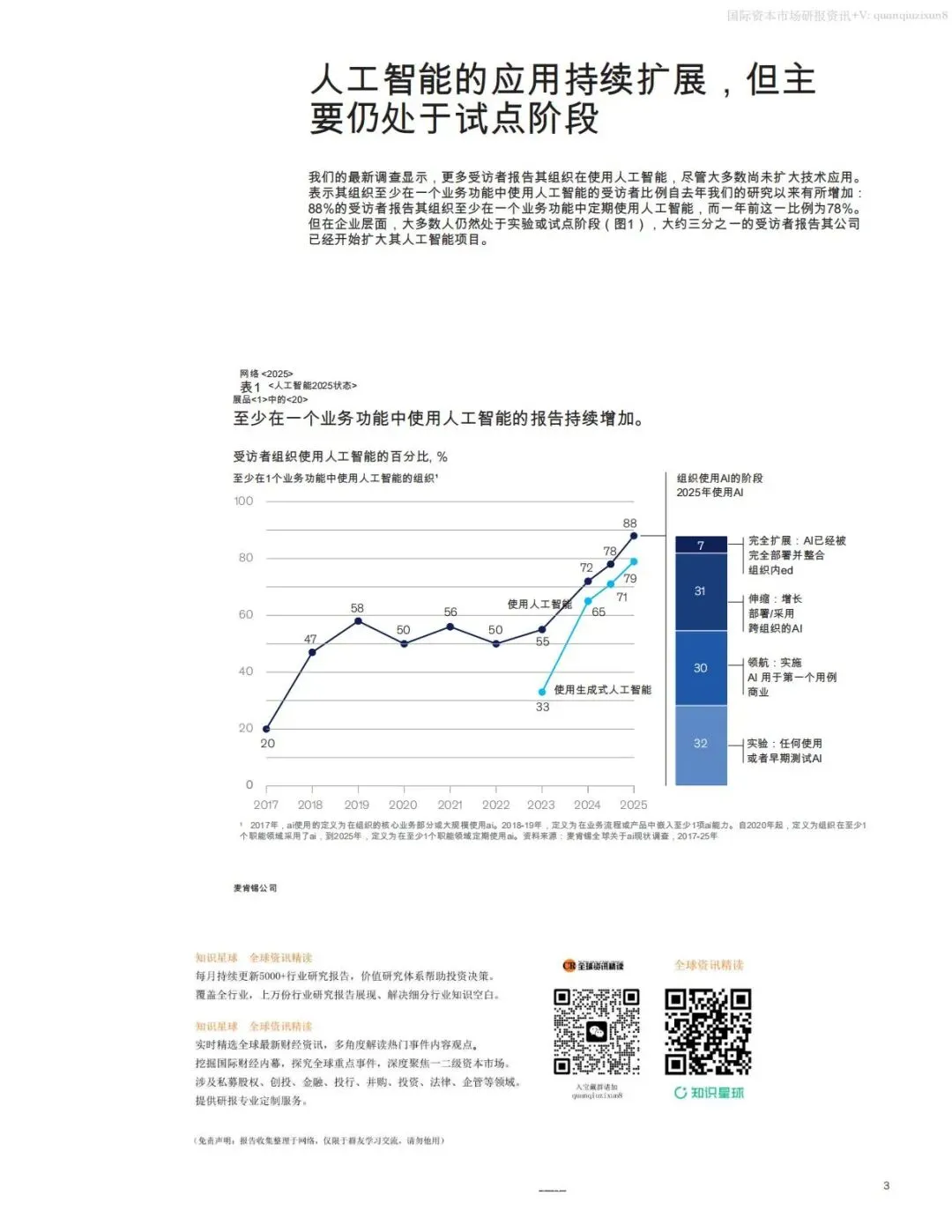 麦肯锡分析认为,AI技术的普及与规模化应用之间存在显著差距。多数企业仍处于AI应用的试点阶段,尚未将AI技术深度融入业务流程中,导致AI技术的潜力未能得到充分发挥。此外,AI技术的部署成本、数据质量、人才短缺等问题也是制约其规模化应用的重要因素。
