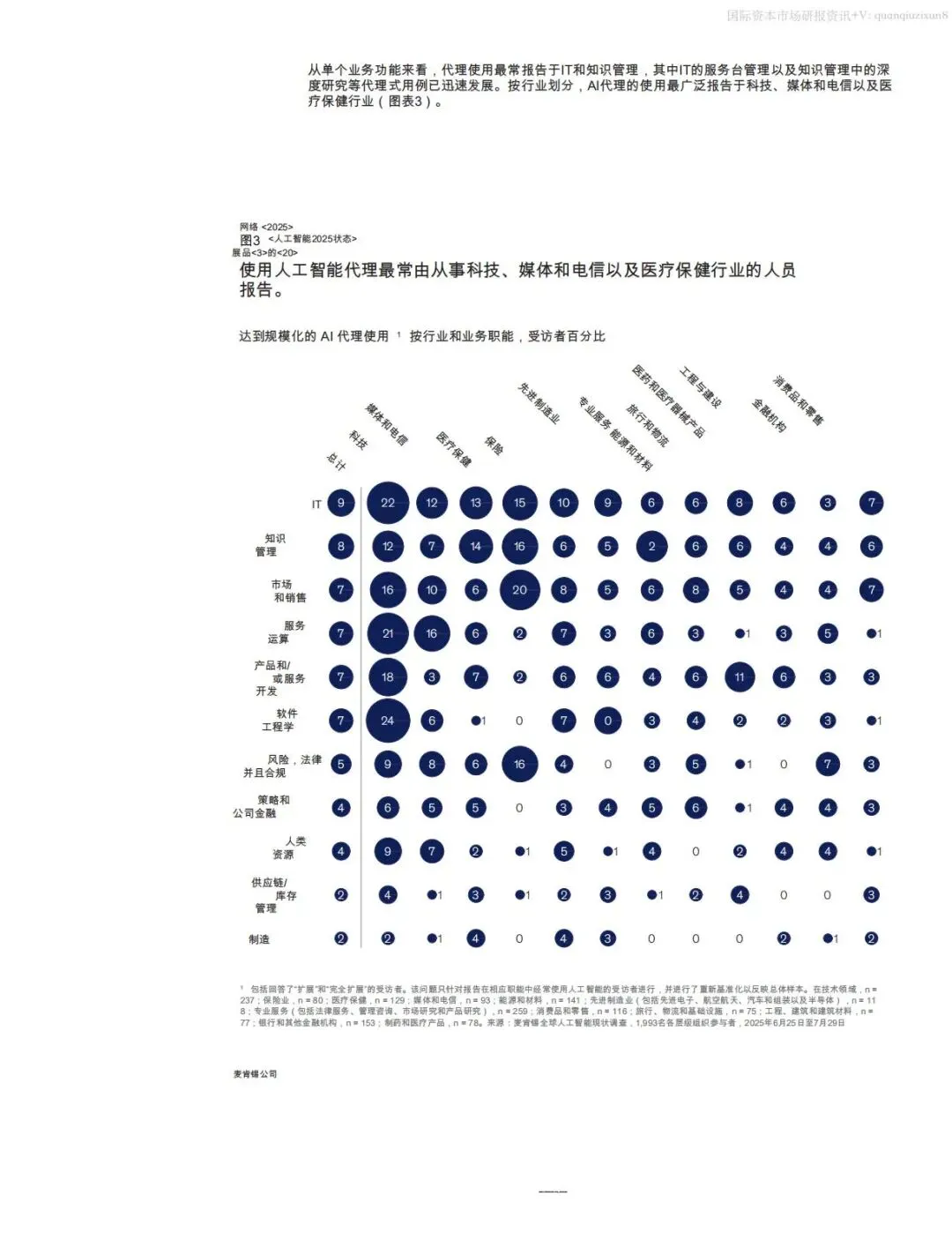 麦肯锡指出,AI Agent的部署并非简单的技术集成,而是需要重构业务流程、重塑组织架构并重新培训员工。由于AI Agent的应用场景往往涉及跨部门协作、复杂流程或高风险决策,因此其落地应用面临诸多挑战。报告强调,企业需要具备清晰的变革叙事、强大的技术实力以及灵活的组织架构,才能成功推动AI Agent的规模化应用。