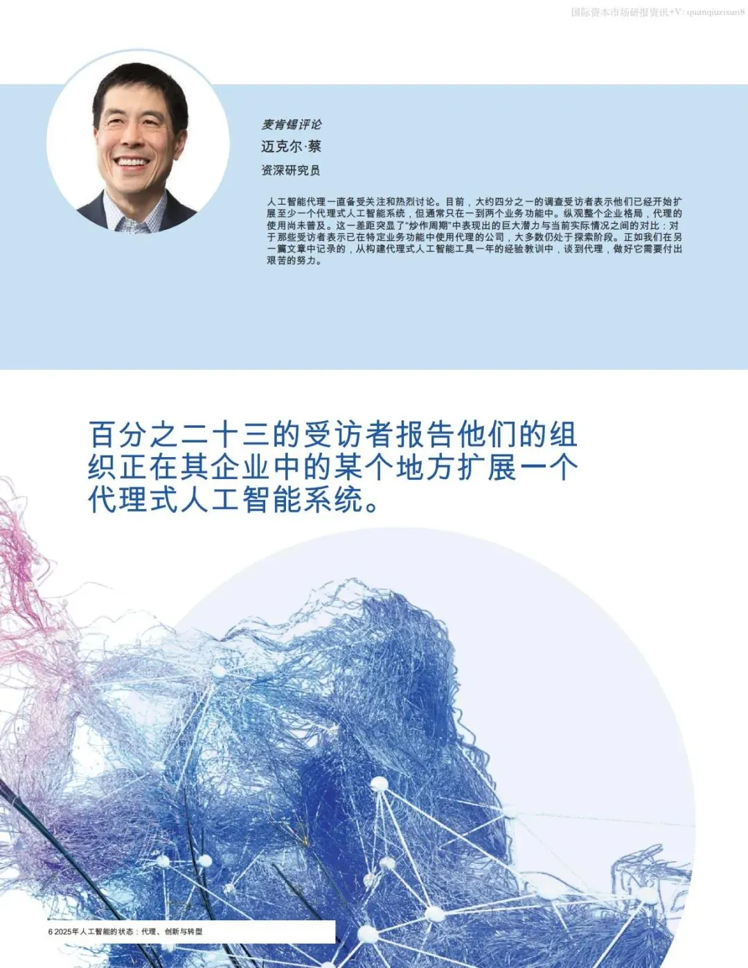 全球知名管理咨询公司麦肯锡发布了《State of AI 2025》最新报告,通过对全球近2000家企业的深入调研,揭示了人工智能(AI)在商业应用中的最新趋势、挑战与机遇。报告指出,AI技术已在全球企业中广泛普及,但真正实现规模化落地并创造显著经济效益的企业仍属少数。