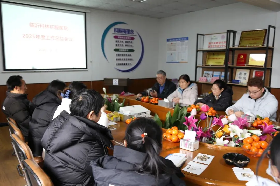 2026年2月6日下午,临沂科林肝胆医院在院会议室召开了2025年度工作总结大会。医院领导徐向田、罗梅、王贤峰、李堂梅以及医院干部职工出席了总结会。王贤峰副院长主持会议,肝病研究所党支部书记徐向田理事长致辞,罗梅院长作2025年终总结及2026年度工作计划报告。