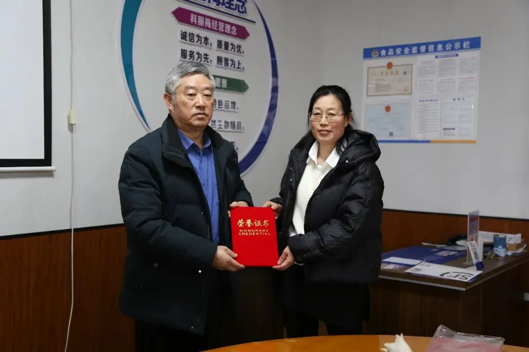会上徐向田理事长在致辞中,首先感谢过去一年来为医院发展辛勤工作的全院干部职工,感谢社会各界的大力支持和帮助。并代表院委会向李堂梅同志颁发了“科丽梅特别贡献奖”。