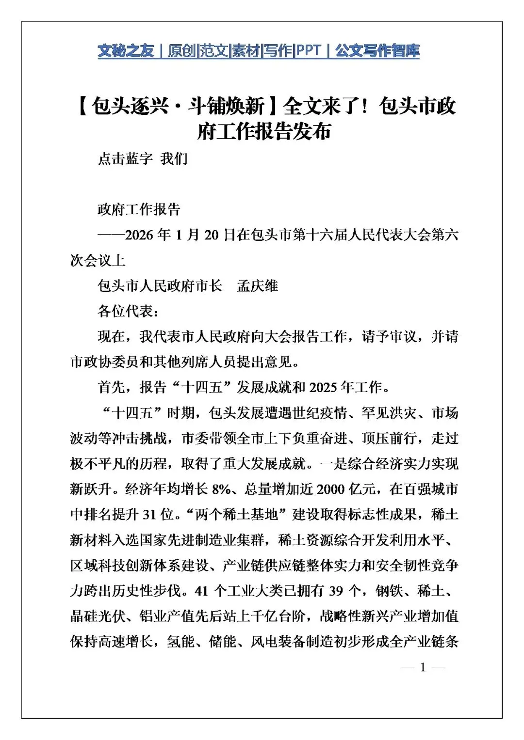 【包头逐兴·斗铺焕新】包头市政府工作报告全文发布