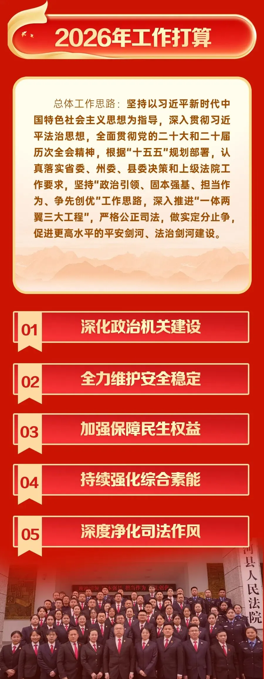 2026年2月4日,在剑河县第十八届人民代表大会第六次会议上,剑河县人民法院党组书记、院长杨彬向大会作工作报告。