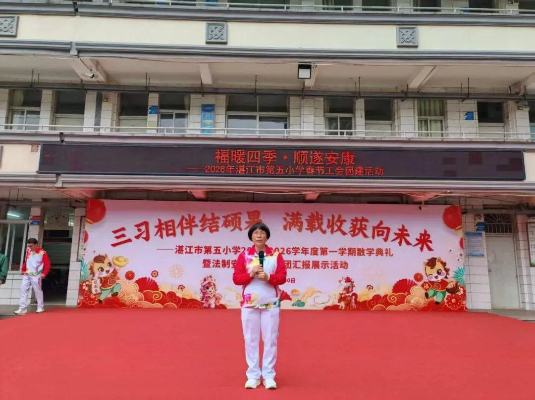 岁序更替,华章日新;凝心聚力,逐光前行。为梳理过往耕耘硕果,明确未来奋进方向,2026年1月31日上午,湛江市第五小学隆重召开2025-2026学年度第一学期期末教职工总结大会,全体教职工齐聚一堂,共忆初心、共话成长、共启新程。