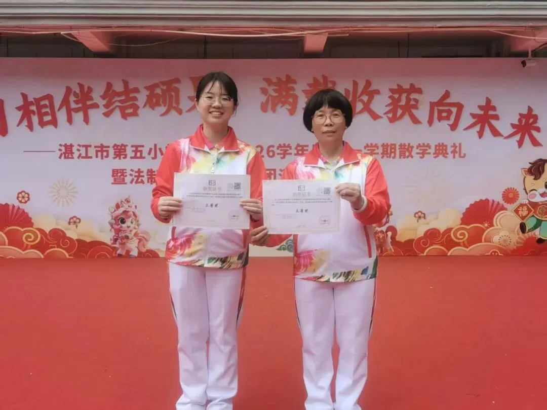 2.韦展然、黄小娟在2025年湛江市国家中小学智慧教育平台全域应用教师数字素养提升实践大赛中荣获一等奖。