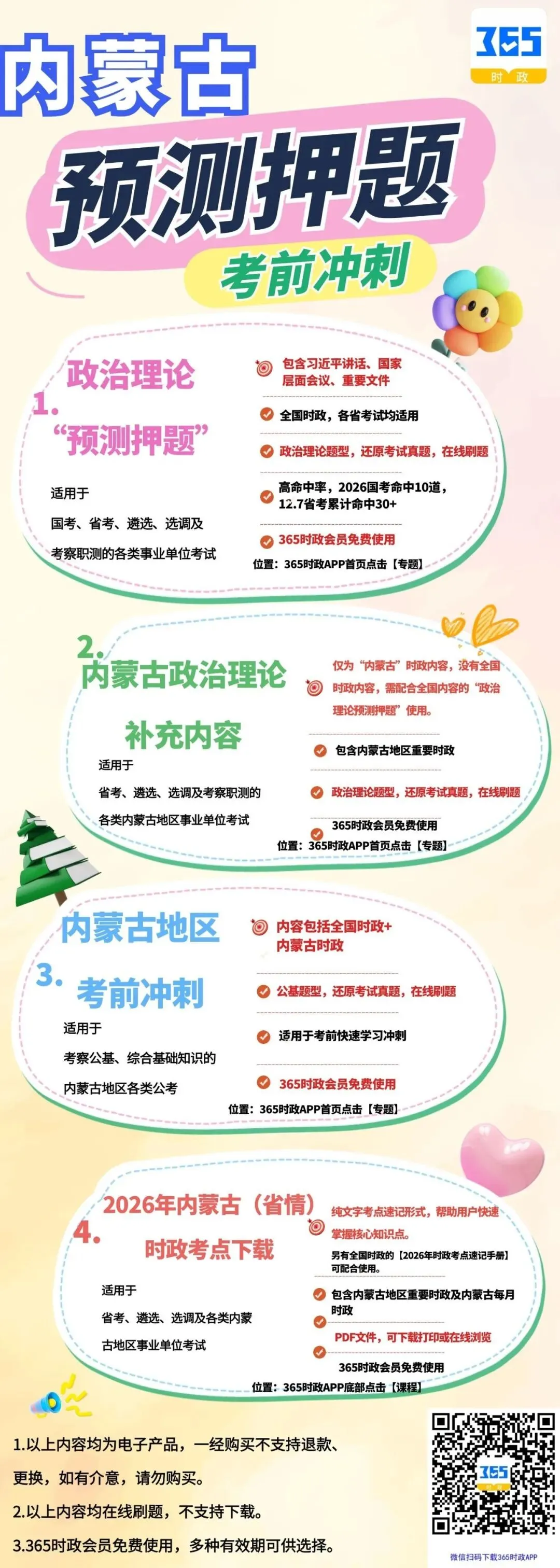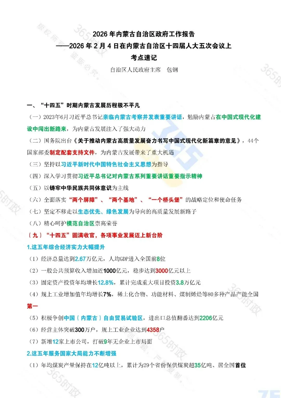 【2026年内蒙古政府工作报告考点、导图、试题】请到365时政APP底部点击【课程】-资料下载版块查看。