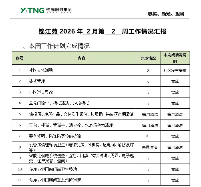 >锦江苑2026年 2月第 2 周工作情况汇报
