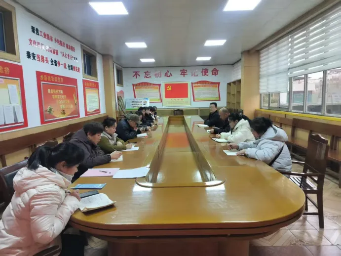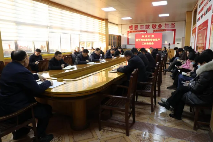 孙书记结合当前阶段实际,对近期几项重点工作进行了安排部署:一全力做好春节及“两会”期间安全隐患排查、值班值守工作,充分利用电子屏、小喇叭、微信群广泛宣传禁燃禁放相关规定,守牢安全底线;二春节前的经济运行;三精心组织好以移风易俗为主题的春节期间文化活动的排练与准备;四持续深入推进环境卫生整治与节日亮化,营造整洁、喜庆的节日氛围;五做好在外人才的信息统计,加强社区新风正气的宣传引导,凝聚发展合力。