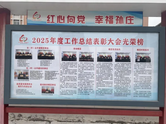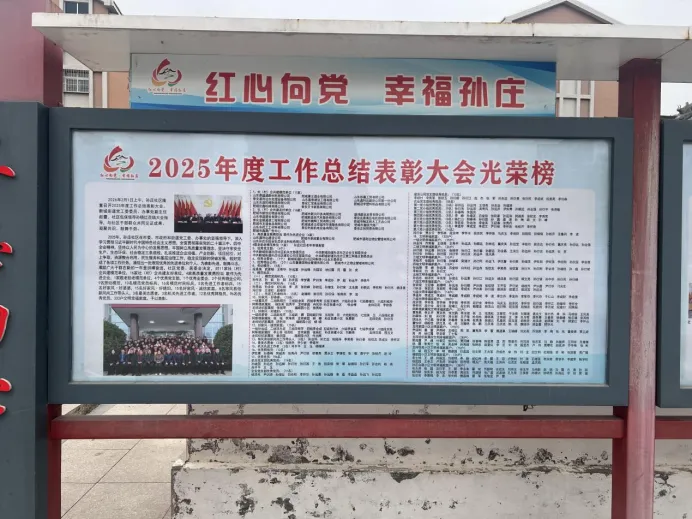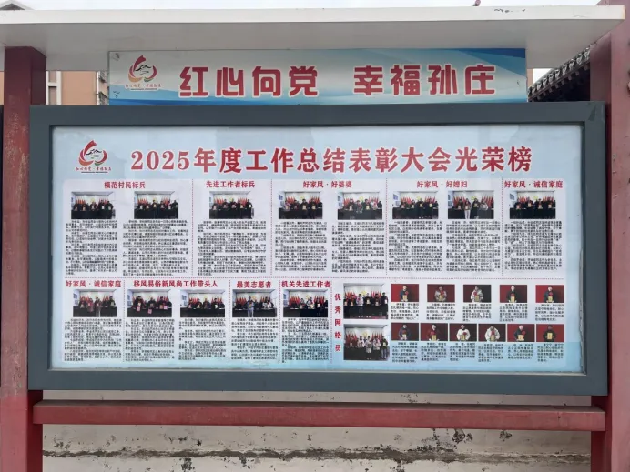新春来临之际,孙庄社区在诚信广场及幸福食堂门口精心制作光荣榜,对2025年度总结表彰大会上评选出的模范人物及先进事迹进行集中宣传。光荣榜图文并茂地展示了优秀党员、模范村民、好婆婆好媳妇等先进典型事迹,吸引众多居民驻足观看。此次宣传不仅营造了崇尚先进、学习榜样的浓厚节日氛围,通过“身边人讲身边事、身边事教身边人”,让榜样力量可感可触,进一步营造了崇尚先进、学习模范、争当榜样的浓厚节日氛围。