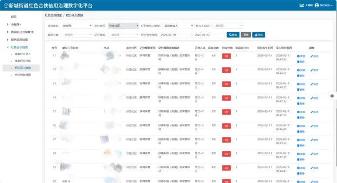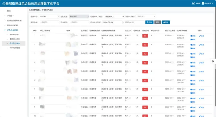 对红色合伙信用治理数字化平台进行了居民信息录入。