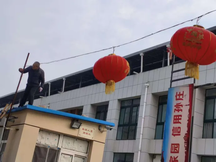 春节临近,在孙庄辖区各小区悬挂灯笼,装点社区环境,营造喜庆、祥和的新春氛围。