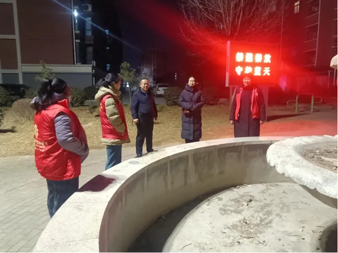 春节期间,孙庄社区副书记孙远忠带队,组织社区“两委”成员及网格员,对辖区各小区开展禁燃禁放专项巡查。巡查中,工作人员对发现的违规燃放烟花爆竹居民,第一时间进行耐心劝导,引导其自觉遵守禁放规定,共同维护辖区平安。