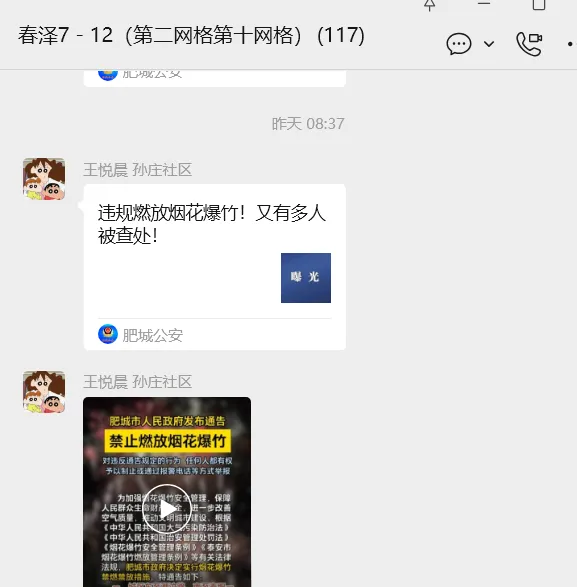 春节期间,孙庄社区网格员深入辖区,向居民发放《禁燃禁放一封信》,现场细致讲解禁燃禁放区域、临时燃放点设置及燃放时间等相关规定,通过微信群广泛宣传,小区内禁燃广播循环播放,引导居民自觉遵守禁燃禁放要求,共同守护平安祥和的节日环境。