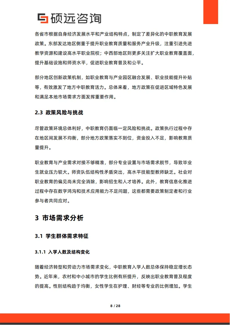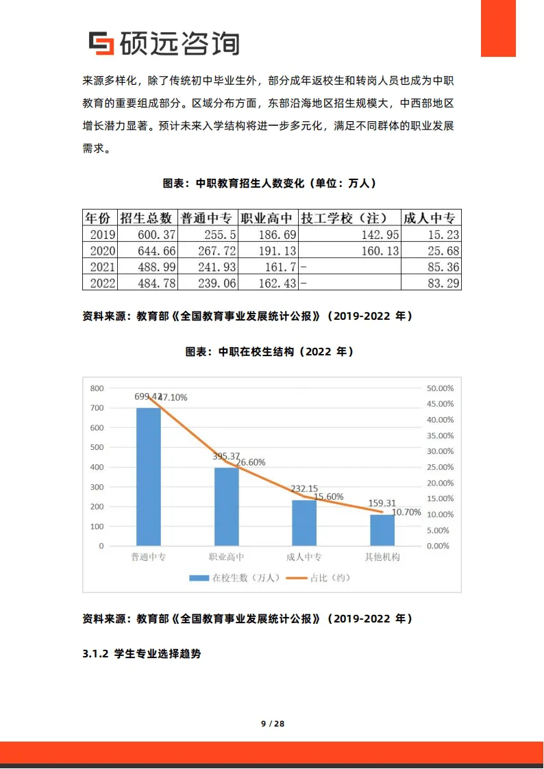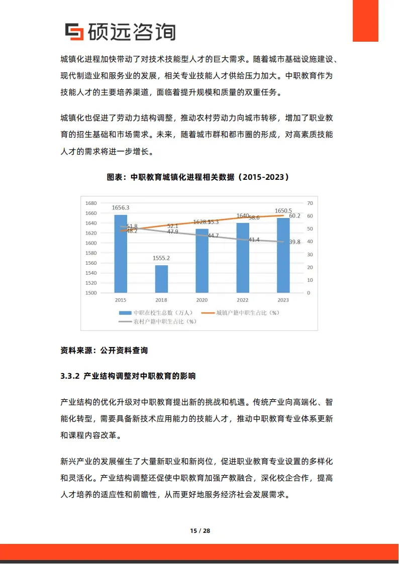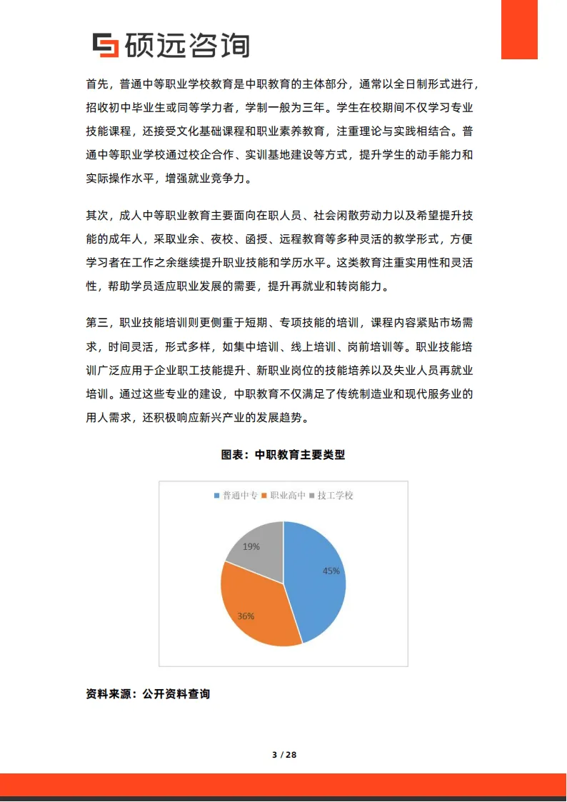 由于公众号资源有限,仅能展示部分少数报告,所有报告原文档均已上传到知识星球”速查报告库”中。加入星球即可无限次下载所有报告,在菜单点击获取报告可查看操作步骤。 客服微信:SCBGK6662025 年中国中等职业教育作为衔接义务教育与高等职业教育的基础职业教育形式,以培养技能型人才为核心,涵盖普通中等职业学校教育、成人中等职业教育、职业技能培训三大类型,专业布局贴合机械制造、电子信息、新能源等产业需求,行业链上下游联动政府、教育机构、用人单位等多方主体,是我国技能人才培养的重要阵地。未完……更多详细请下载完整报告